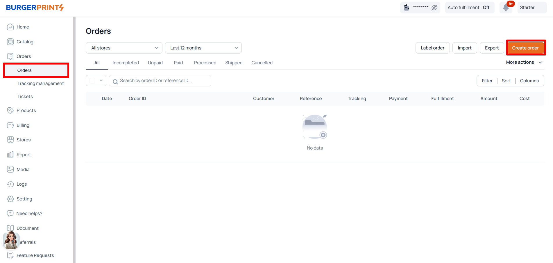 * Log in to your BurgerPrints Dashboard.