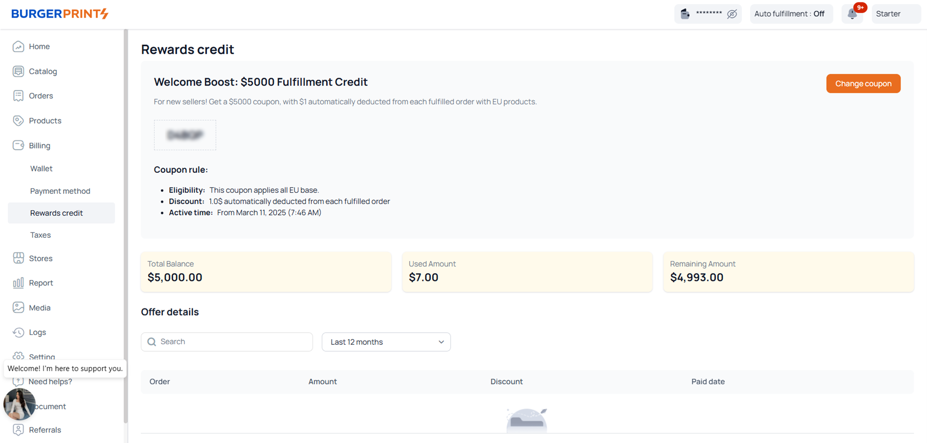 Before you begin, make sure you are logged in to your BurgerPrints Dashboard and have a valid voucher or discount code.