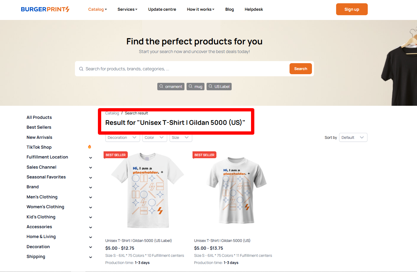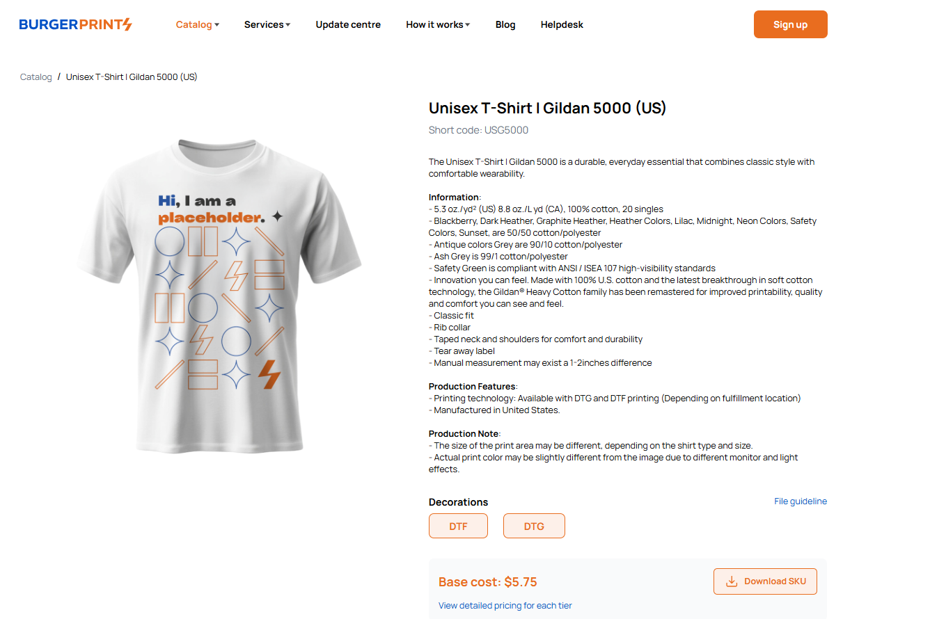 * Select the product you want to check, for example: **Unisex T-Shirt | Gildan 5000 (US)**