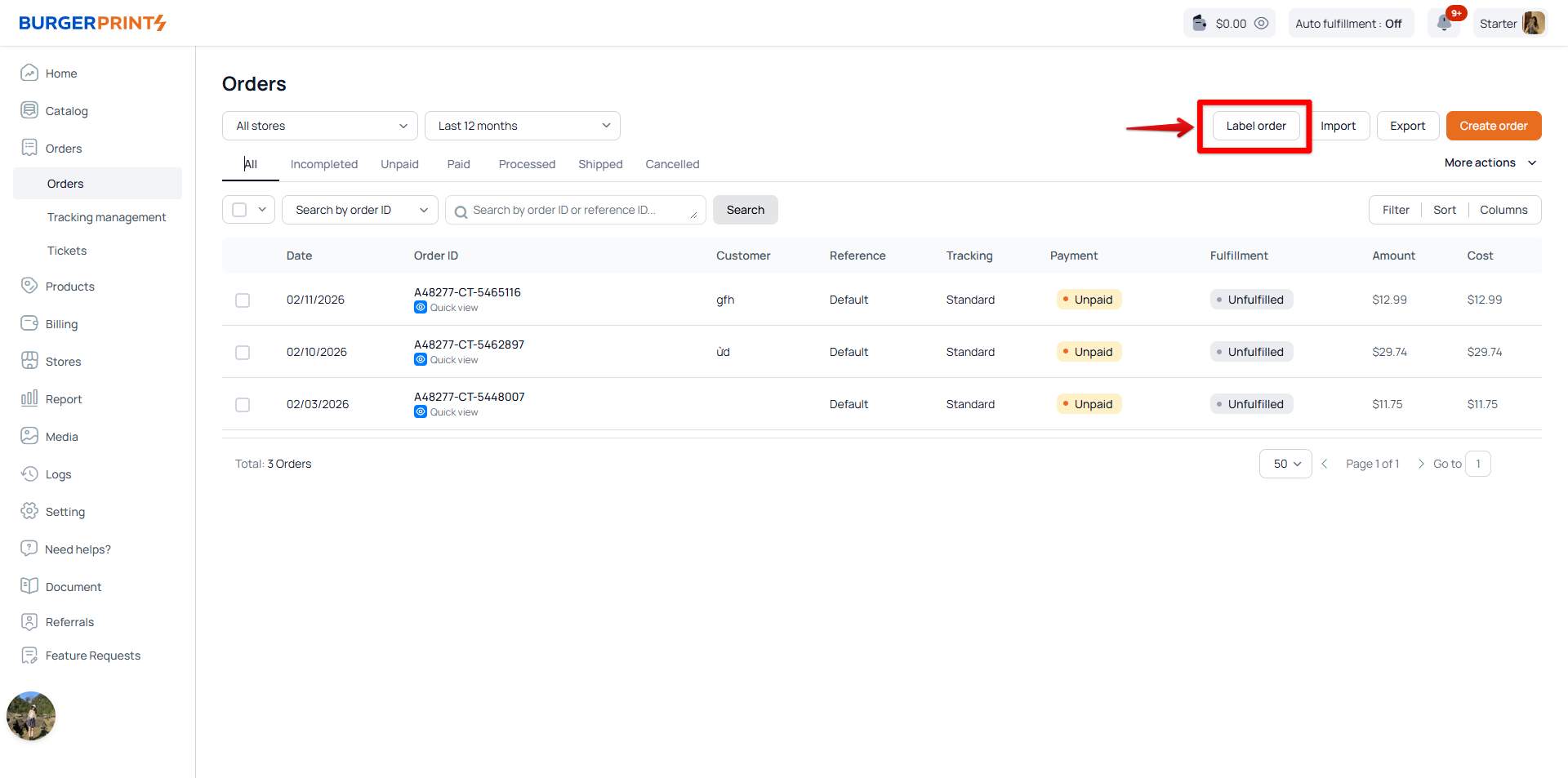 Below is a breakdown of all primary sections inside the BurgerPrints Dashboard and how they support your fulfillment workflow.