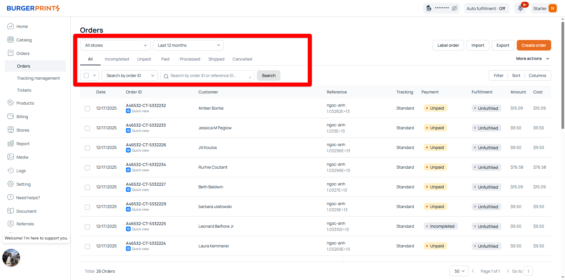 * Always review your order statuses daily so you can resolve Incompleted or Unpaid orders before they cause production delays.