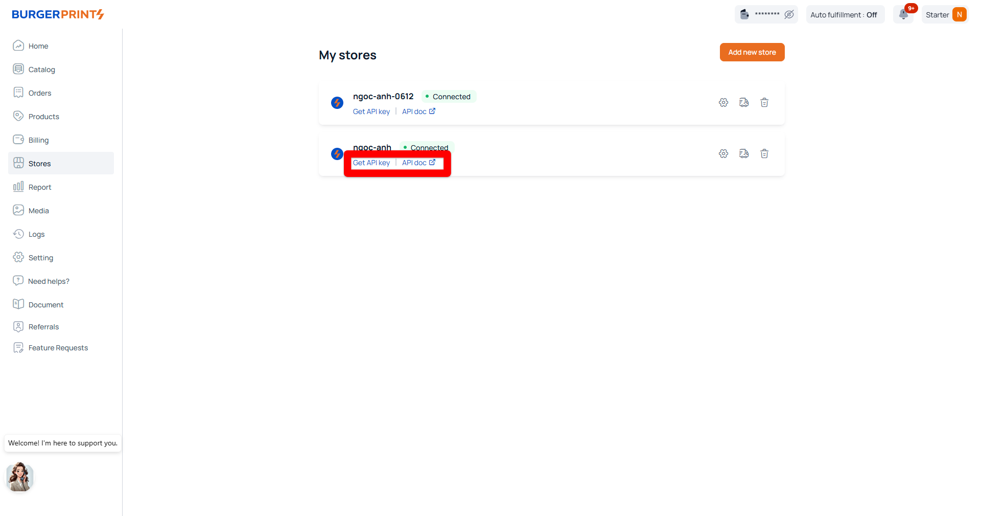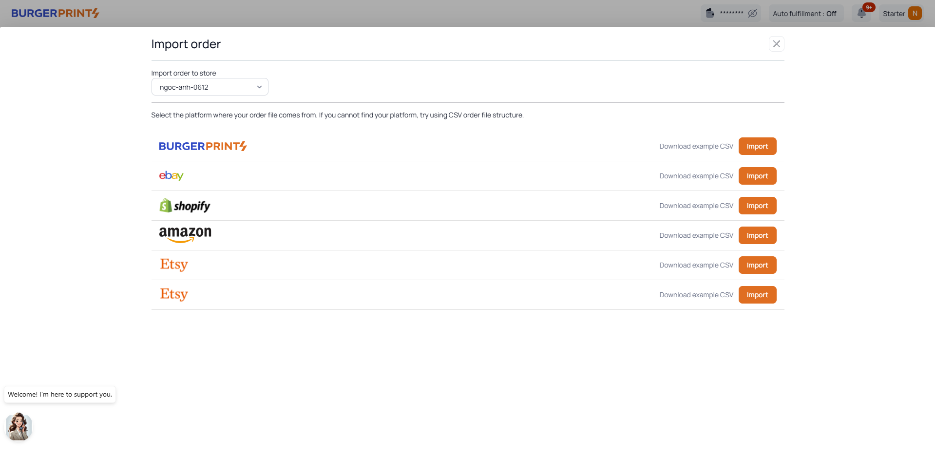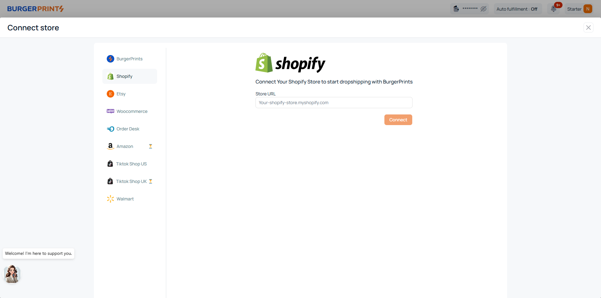 * Connect your marketplace store to BurgerPrints