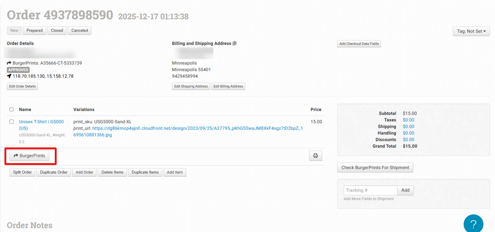 * Always ensure orders contain complete and accurate information (product SKU, shipping address, and shipping method) before syncing to BurgerPrints.