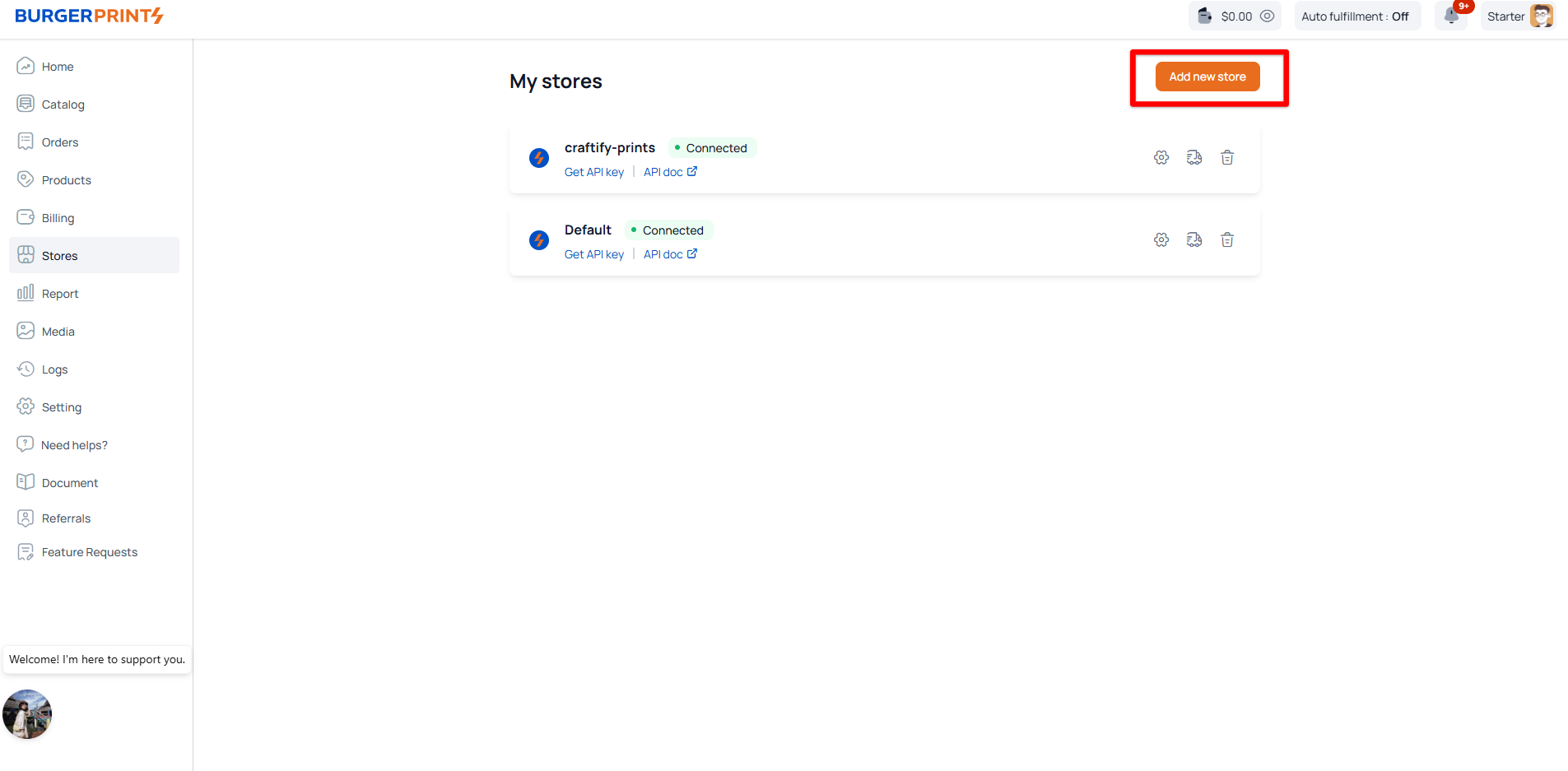 * To integrate Order Desk with BurgerPrints, you need an existing BurgerPrints store. You may use the default store provided by BurgerPrints or create a new one. You can create a new BurgerPrints store in just three simple steps: